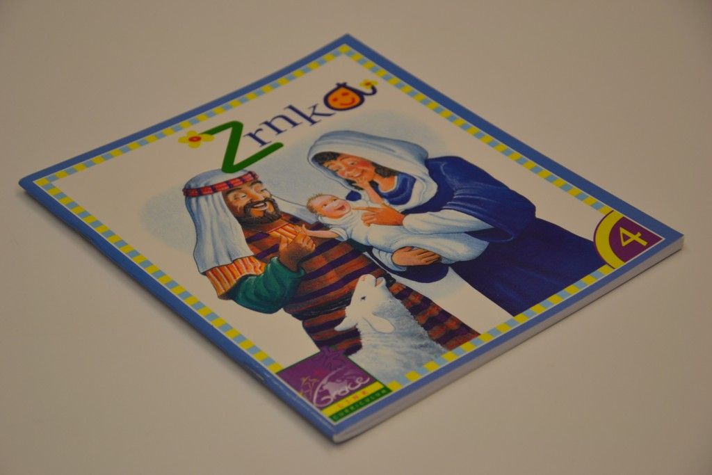Učebnice Zrnka 4 je určena pro děti od 0 do 2 let a pro jejich rodiče. V této učebnici najdete pouze tři lekce - vždy jednu na celý měsíc. Proč? Abychom mohli dát svým dětem větší příležitost skutečně se naučit základní myšlenky, a to opěteovným zdůrazňováním. Dáváme také více příležitostí k opakování jednotlivých prvků programu, jakými jsou například písničky, a hry s prsty.
