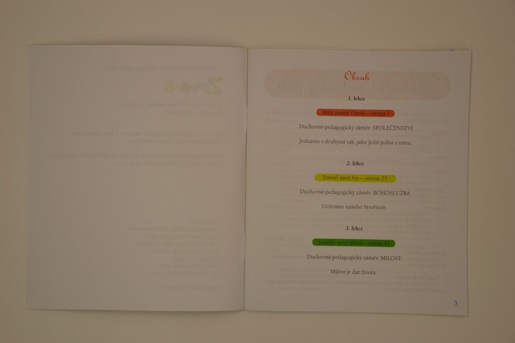 Možná přivítáte, že tyto lekce jdou paraelně s lekcemi pro děti vyššího věku. Stejné myšlenky jsou zdůrazňovány celý měsíc v obou katergoriích předškolního věku, avšak lekce pro děti vyššího předškolního věku obsahují více detailů daného příběhu.